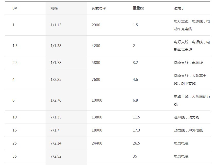 BV是由一根或者几十根粗铜丝构成的导体,整体偏硬,适合使用在主线或者支线。
